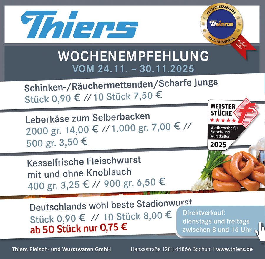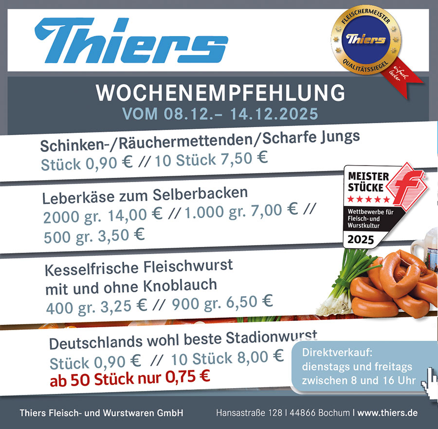 Kurz um: Die Menschen im Ruhrgebiet wissen gute Qualität bei Wurst und Fleisch zu schätzen. Daher stehen Qualität, Service und Frische im Mittelpunkt unserer täglichen Arbeit für unsere Kunden.
